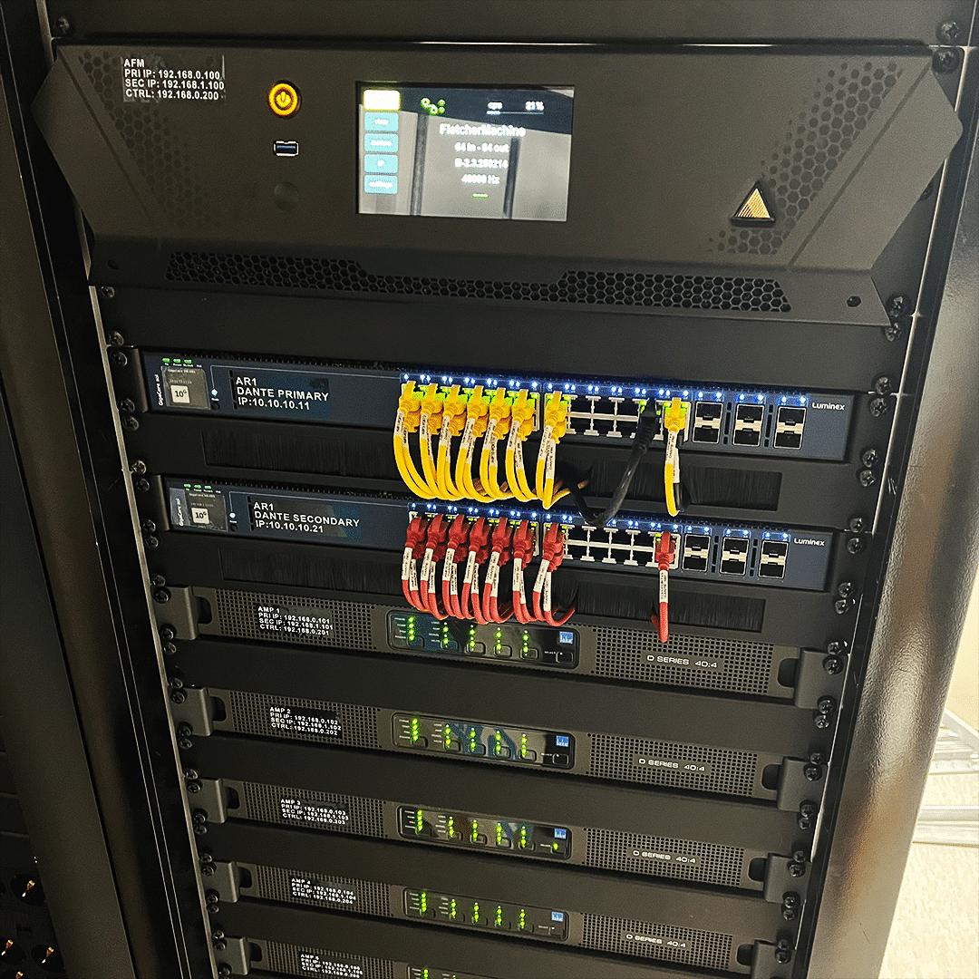 Uutta järjestelmää suunniteltaessa lähtökohtana oli sekä äänenlaatu että luotettavuus. Kotkassa käytössä oli jo valmiiksi Dante-pohjainen verkko, joten sen päälle oli luontevaa rakentaa myös uusi kokonaisuus. Audioverkon redundanssi varmistettiin lisäämällä neljä Luminex Gigacore 30i -kytkintä.